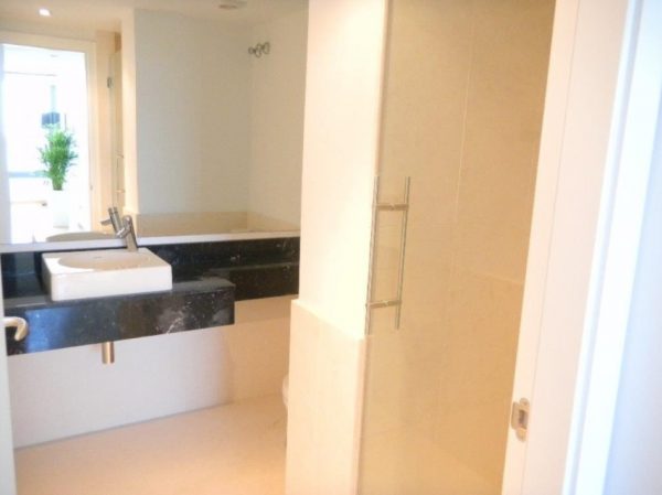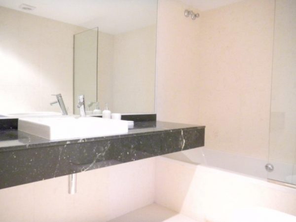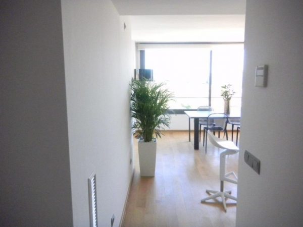 Modern and bright apartment that has an open kitchen, fully equipped with DOCA signature island, and a large living room with lounge and dining room. There are two bedrooms, one with an en-suite bathroom. The apartment has two bathrooms, one with a bathtub and the other with a shower, both with underfloor heating.