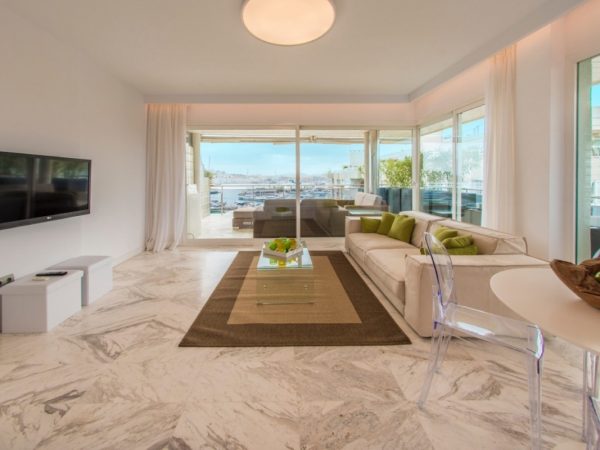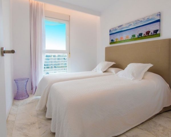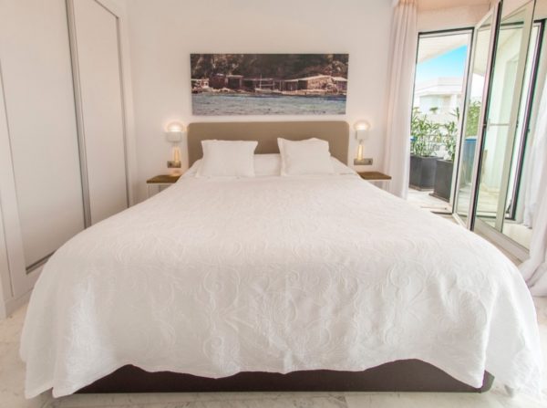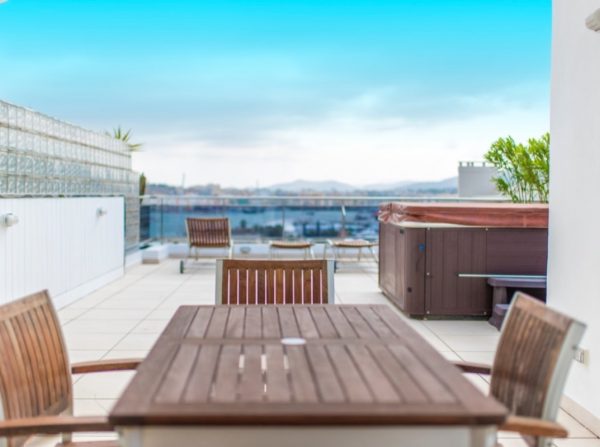 Penthouse on the Paseo Marítimo de Ibiza. Modern and luxurious penthouse with two bedrooms and two bathrooms. Beautiful views. Private solarium with Jacuzzi, outdoor shower. Kitchen integrated into the living room, air conditioning in all main rooms.