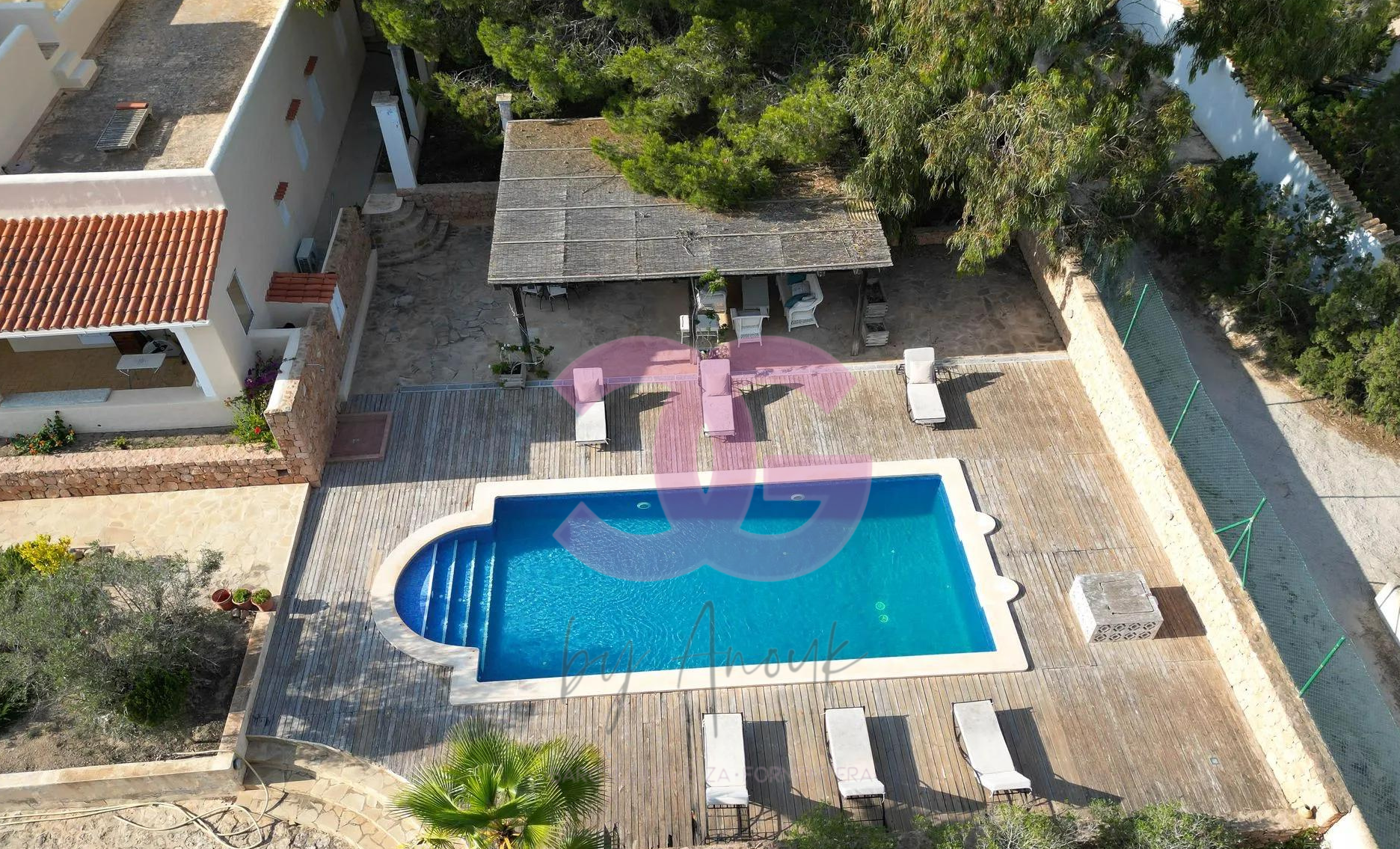 Las amplias terrazas orientadas al sur, bañadas por el sol, invitan a disfrutar de momentos al aire libre y a contemplar las vistas panorámicas al mar. Para refrescarte durante los días cálidos de verano, la villa cuenta con una piscina privada, rodeada de un cómodo y fresco Chillout. Además, la propiedad ofrece un garaje espacioso. Es importante destacar que la villa está completamente rodeada por un muro de piedra payesa, que no solo agrega un toque de encanto tradicional, sino que también proporciona privacidad y seguridad.