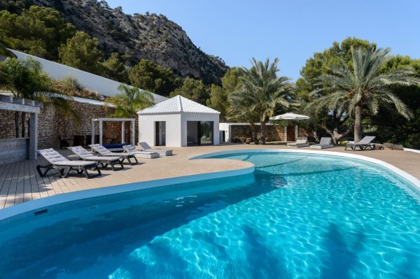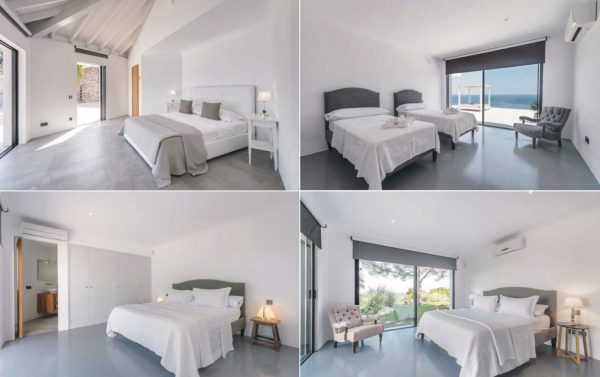 Villa situada en Es Cubells, en la costa sur de Ibiza, recientemente ha sido renovada con un estilo elegante y moderno y tiene increíbles vistas al mar desde casi todas las habitaciones, así como desde las amplias terrazas, la amplia zona de la piscina y el césped. Villa Orion tiene cinco habitaciones, incluida una suite principal gigante. Tres de estas habitaciones (la principal, una doble en suite y una doble con baño separado) se encuentran en el piso superior de la casa principal. Hay un baño adicional doble en un anexo, muy fácilmente accesible desde las otras habitaciones. La última habitación doble con baño es una habitación elegante que se abre a la terraza de la piscina. Todas las habitaciones tienen vistas al mar, aire acondicionado y acceso a las terrazas exteriores. El piso principal está debajo de las habitaciones y es un área espaciosa de planta abierta con grandes puertas correderas que se empotran en las paredes creando una fantástica sensación interior / exterior. Caminas desde la sala de estar hacia la terraza del comedor y el césped que a su vez desciende a la terraza de la piscina y al bar.