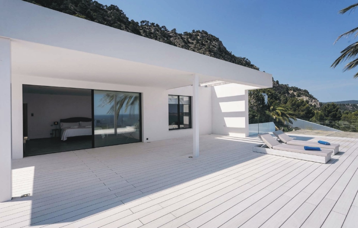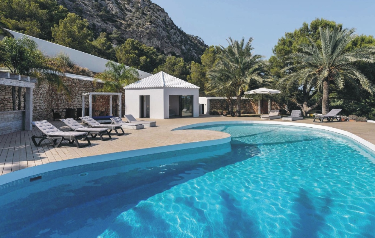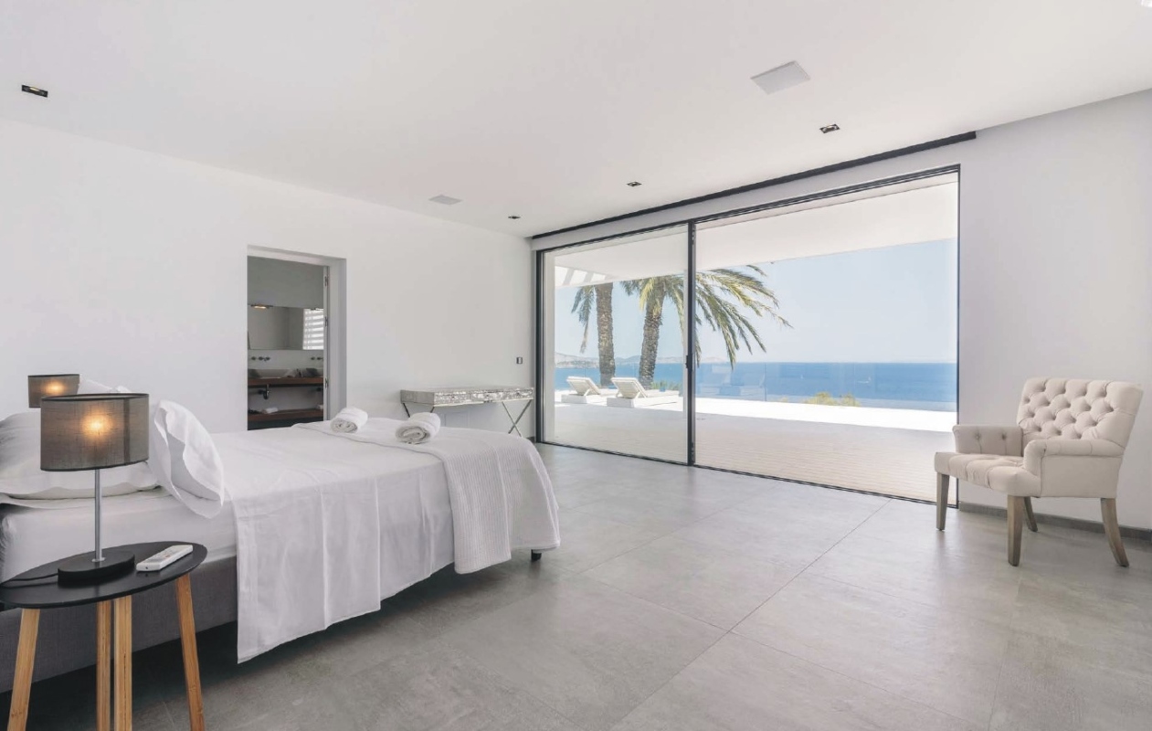 Villa situada en Es Cubells, en la costa sur de Ibiza, recientemente ha sido renovada con un estilo elegante y moderno y tiene increíbles vistas al mar desde casi todas las habitaciones, así como desde las amplias terrazas, la amplia zona de la piscina y el césped. Villa Orion tiene cinco habitaciones, incluida una suite principal gigante. Tres de estas habitaciones (la principal, una doble en suite y una doble con baño separado) se encuentran en el piso superior de la casa principal. Hay un baño adicional doble en un anexo, muy fácilmente accesible desde las otras habitaciones. La última habitación doble con baño es una habitación elegante que se abre a la terraza de la piscina. Todas las habitaciones tienen vistas al mar, aire acondicionado y acceso a las terrazas exteriores. El piso principal está debajo de las habitaciones y es un área espaciosa de planta abierta con grandes puertas correderas que se empotran en las paredes creando una fantástica sensación interior / exterior. Caminas desde la sala de estar hacia la terraza del comedor y el césped que a su vez desciende a la terraza de la piscina y al bar.
