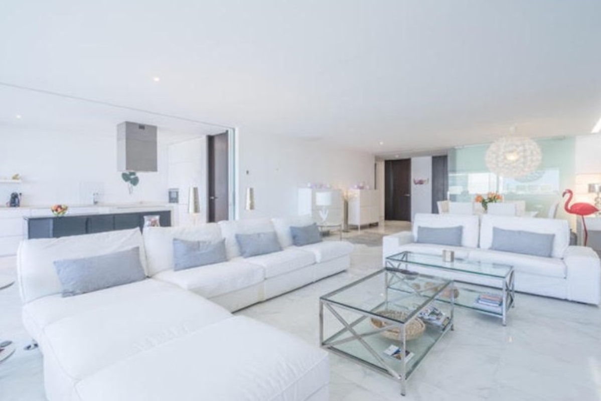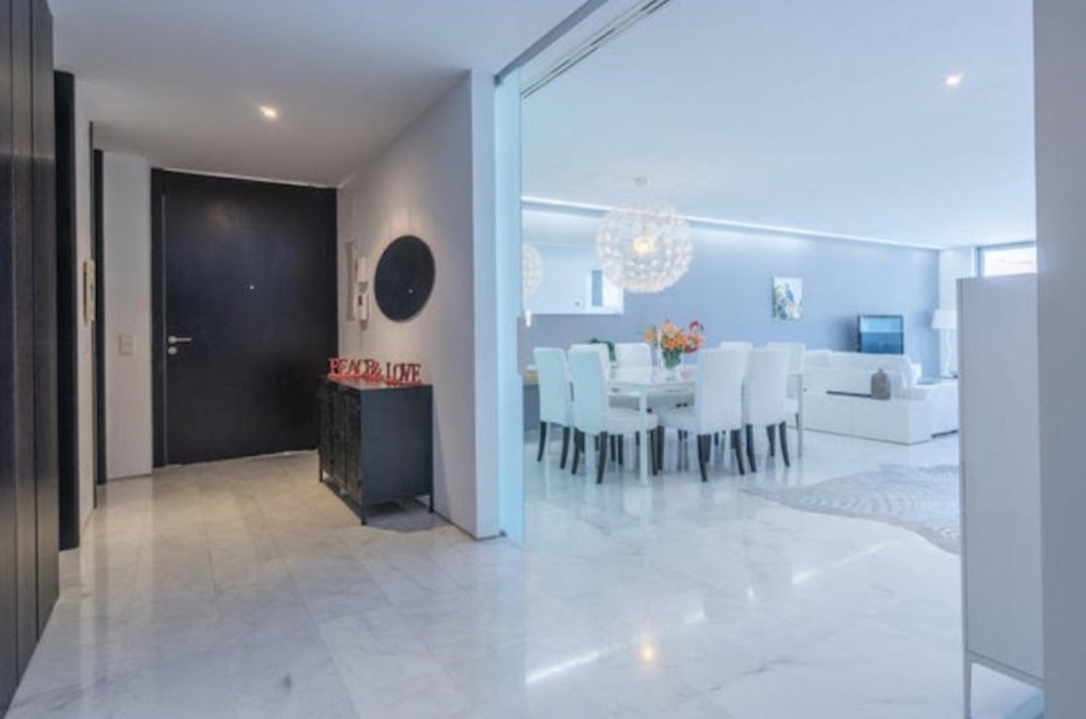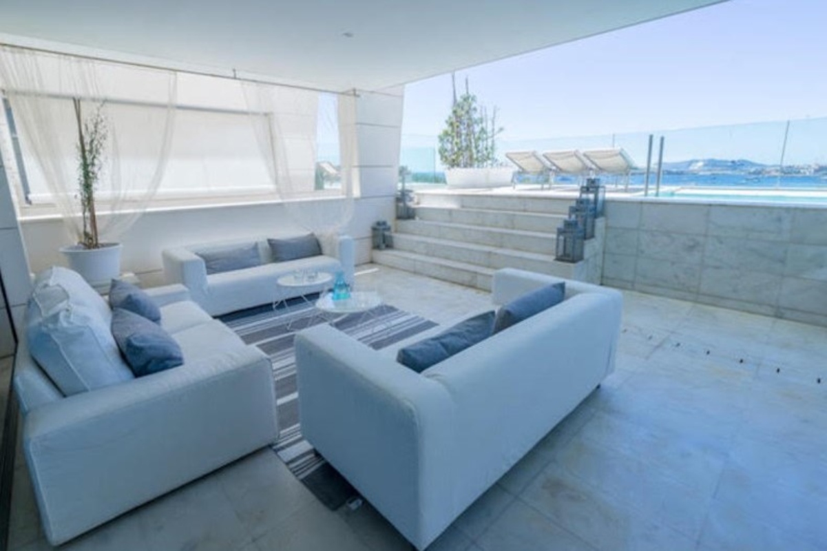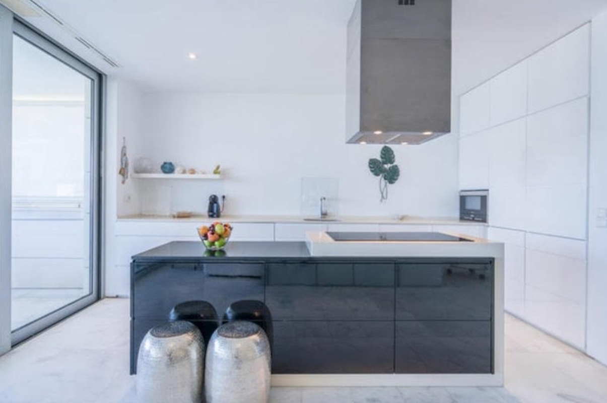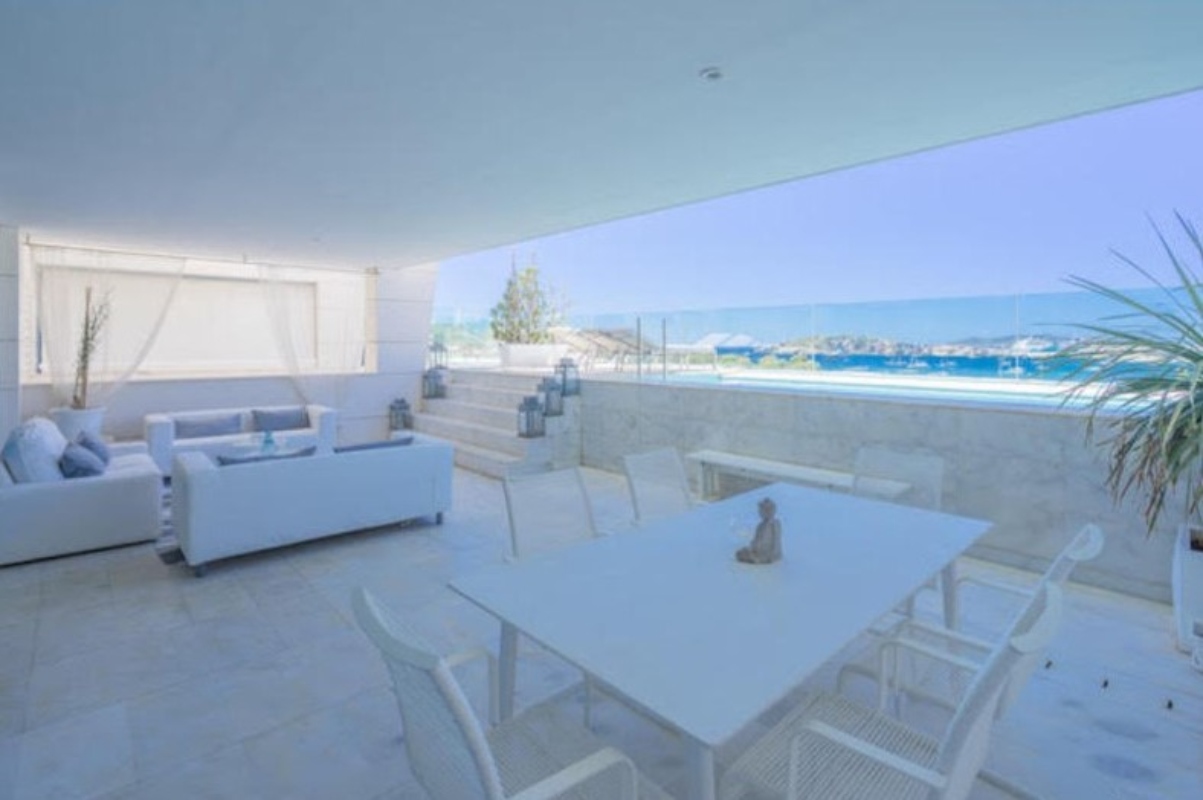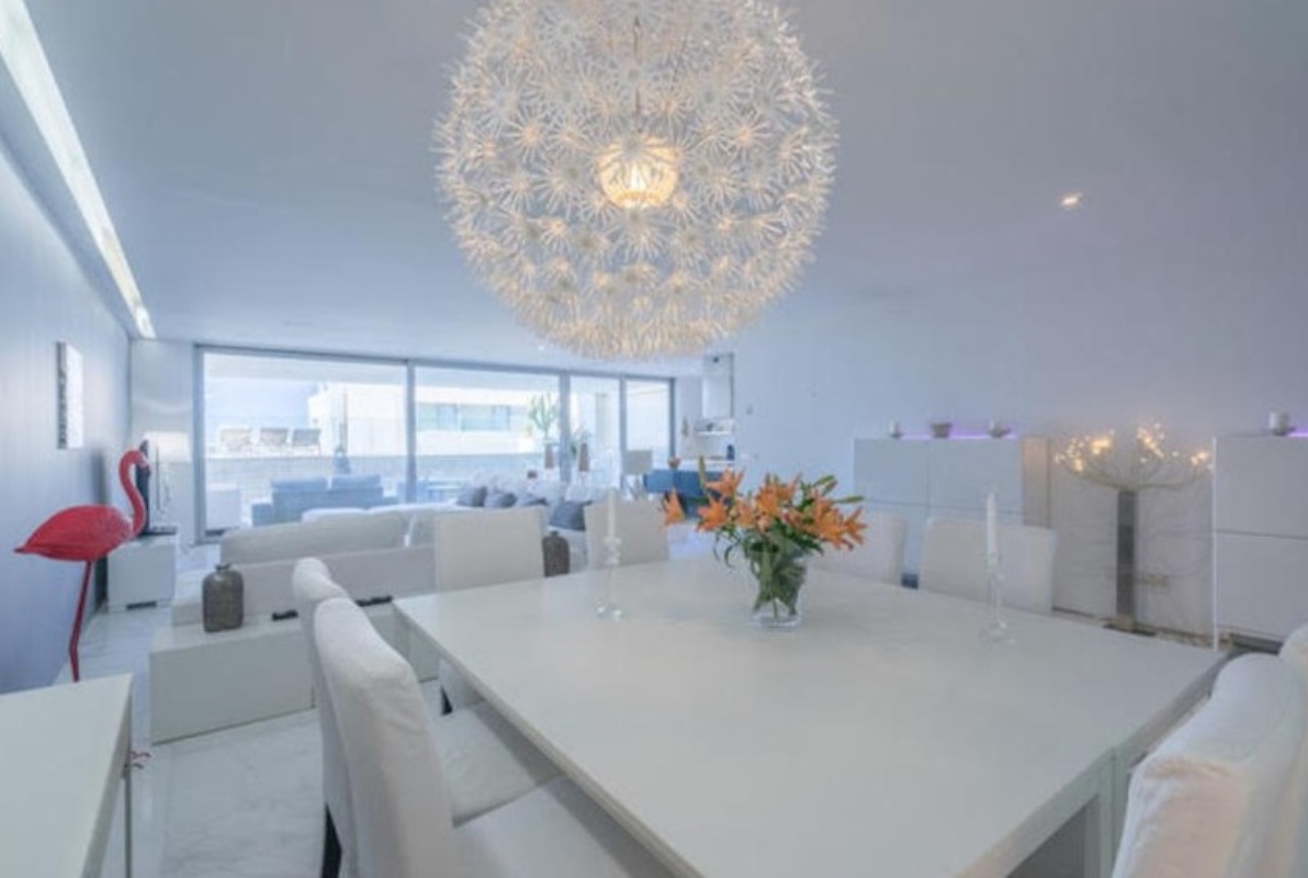 Lujosa vivienda en primera planta con piscina privada, enfrente del mar. Con magníficas vistas. Dos plazas de parking cubiertas. Líneas minimalistas, suelos de mármol. Gran living, cocina abierta. Tres dormitorios dobles con baño en suite con ducha, y aseo de cortesía. 1 dormitorio con cama de matrimonio, vestidor y baño 1 dormitorio con 2 camas individuales y baño 1 dormitorio con 2 camas individuales y baño Habitación de servicio con baño en suite.