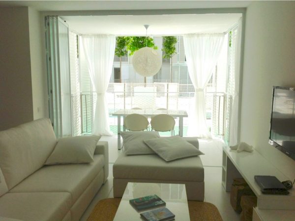 Propiedad situada en una de las zonas más exclusivas de la isla, como lo es Marina Botafoch, cerca de todos los lugares más emblemáticos. A pocos minutos del centro de la ciudad de Ibiza y muy bien comunicado. Patio Blanco es uno de los edificios más emblemáticos, situados en el corazón de la exclusiva zona de Marina Botafoch y diseñados por el prestigioso arquitecto Jean Nouvel. Cuando pensó en Patio Blanco buscó la forma de integrarlo en la zona de una forma harmoniosa, siempre cuidando detalles como la luz y las sombras, en este caso destaca, como el nombre del edificio indica el color blanco, rodeando la comunidad por una piscina comunitaria. Cuenta con una habitación doble con baño equipado, salón y comedor con acceso a la terraza. Cocina integrada en el salón y comedor. Este moderno piso situado en el edificio Patio Blanco dispone de dos habitaciones y dos cuartos de baño (uno con ducha y el otro con bañera) Salón comedor y cocina abierta.